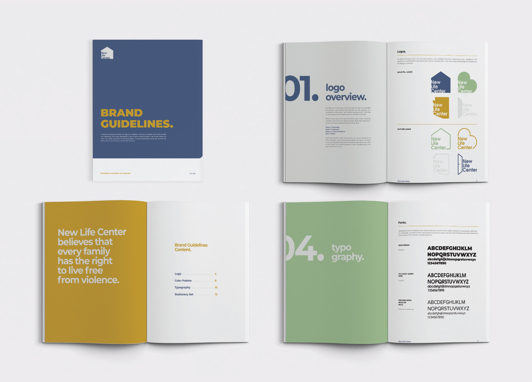 I proposed a family of logos that represented all the aspects of New Life Center’s new directions.