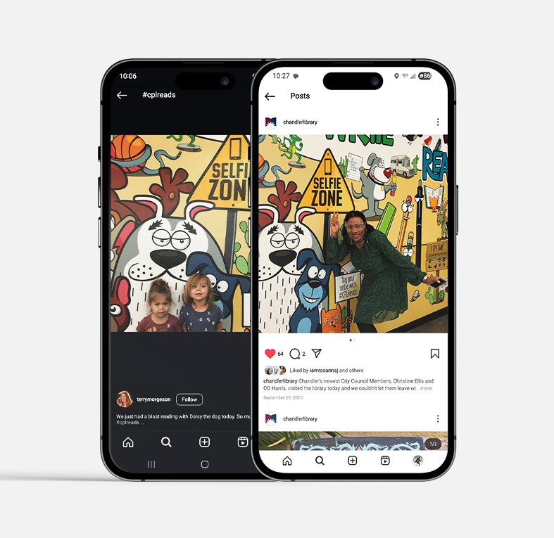 The Chandler Public Library had received a grant to update their youth areas. They had labeled them Create, Play, Learn Spaces. The Spaces are located in each of Chandler’s public libraries and prepare children for kindergarten through rotating activities designed to help them with five critical skills needed for kindergarten: reading, singing, playing, writing and talking.